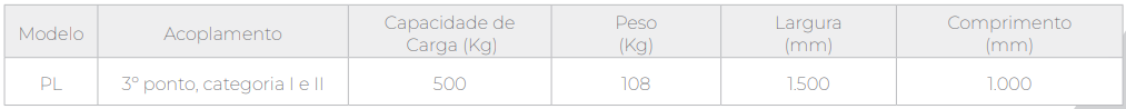 Acoplada ao 3º ponto do trator, a PL – Plataforma Agrícola, auxilia no transporte de pequenas cargas nos trabalhos diários.